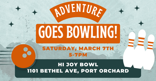 Church-Wide Bowling Night to Support Our Youth! Join us Saturday, March 7 from 5–7 PM at Hi Joy Bowl for a fun-filled evening supporting our students as they head to Black Diamond Camp this summer. Whether you plan to bowl or just come to hang out, socialize, and cheer others on, everyone is invited. Bowling is $18 per person (includes shoe rental) and includes two hours of bowling. No registration required; cash or check preferred. Hi Joy Bowl is located at 1101 Bethel Ave, Port Orchard. All proceeds go directly to our general youth camp fund as we support our kids growing closer to Jesus and preparing for an unforgettable summer at camp. Questions? Email nextgen@faithadventure.com